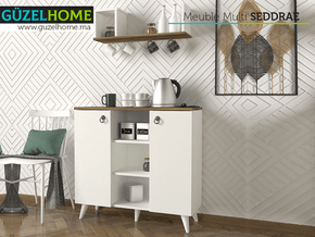 Cabinet/Meuble Multifonction SEDDRA - Blanc et Noyer - Meubles de décoration chez GÜZELHOME Maroc