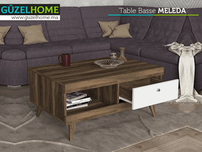 Table Basse MELEDA à 2 tiroirs - Noyer et Blanc - Salon et séjour