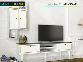 Meuble TV avec rangement ⭐Le meuble TV ALEYNA de Güzelhome est un choix parfait pour ceux qui cherchent à ajouter une touche d'organisation et de style à leur salon. Avec...
