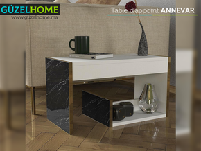 Table d'appoint ANNEVAR - Blanc, Effet Marbre et Doré