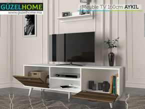 Meuble TV AYKIL 160cm - Noyer et Blanc - Salon et séjour