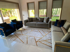 Tapis moderne imprimé ORIGAMI - Gris clair et Doré en dégradé - Salon et Séjour