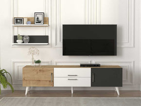 Meuble TV moderne TAHI fabriqué en bois chêne, gris et blanc, largeur 160 cm Dimensions du meuble TV suspendu: • Longueur: 160 cm • Hauteur: 45 cm • Profondeur: 32 cm Vous pouvez examiner la...