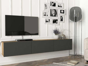 Achetez votre Meuble TV Suspendu ALMAD en bois effet chêne et gris anthracite Dimensions du produit: • Largeur: 180 cm • Hauteur: 29,5 cm • Profondeur: 29,5 cm Vous pouvez examiner la dimension détaillée du...