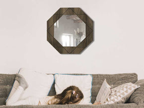 Miroir de décoration avec cadre hexagonal en bois effet noyer Caractéristiques du miroir: Dimensions: 45 x 45 cm Miroir : Saint-Gobain première qualité. Cadre du miroir : bois Qualité du Miroir...