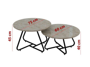 Ensemble de tables basse élégantes en bois effet marbre et structure métallique doré. Cet en ensemble est composé de 2 pièces. Les informations de taille détaillées sont dans les images...