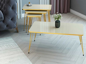 Ensemble de tables basse élégantes en bois effet marbre et structure métallique doré. Cet en ensemble est composé de 3 pièces. Les informations de taille détaillées sont dans les images...