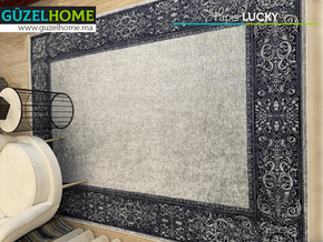 Tapis moderne imprimé LUCKY - Gris et Bleu marine - Salon et séjour - Meubles de décoration chez GÜZELHOME Maroc