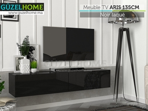 Stand TV Suspendu ARIS 135cm - Noir laqué - Meubles de décoration chez GÜZELHOME Maroc