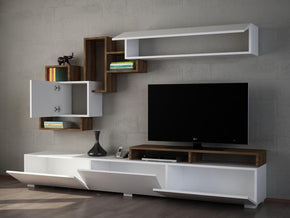 Meuble TV ELIT 210cm avec Rangement mural - Noyer et Blanc - Ameublement Maroc - Meubles de décoration chez GÜZELHOME Maroc