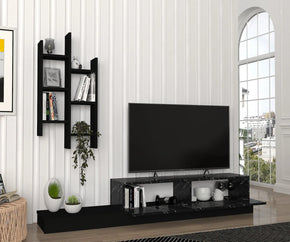 T0011 Meuble TV Marbre Noir Effet Marbre et Doré Salon et séjour Meubles de décoration chez GÜZELHOME Maroc Casablanca Rabat Tanger Berkane