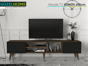 Stand TV ADNOS 160cm - Noyer et Noir - Ameublement Maroc - Meubles de décoration chez GÜZELHOME Maroc
