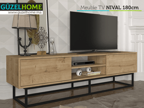 Stand TV NIVAL 180cm - Chêne et Noir - Ameublement d'intérieur Maroc
