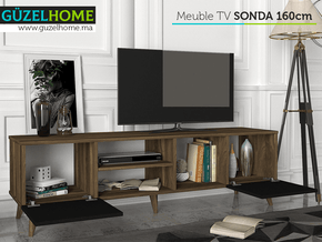 Table TV SONDA 160cm - Noyer et Noir - Ameublement Maroc - Meubles de décoration chez GÜZELHOME Maroc