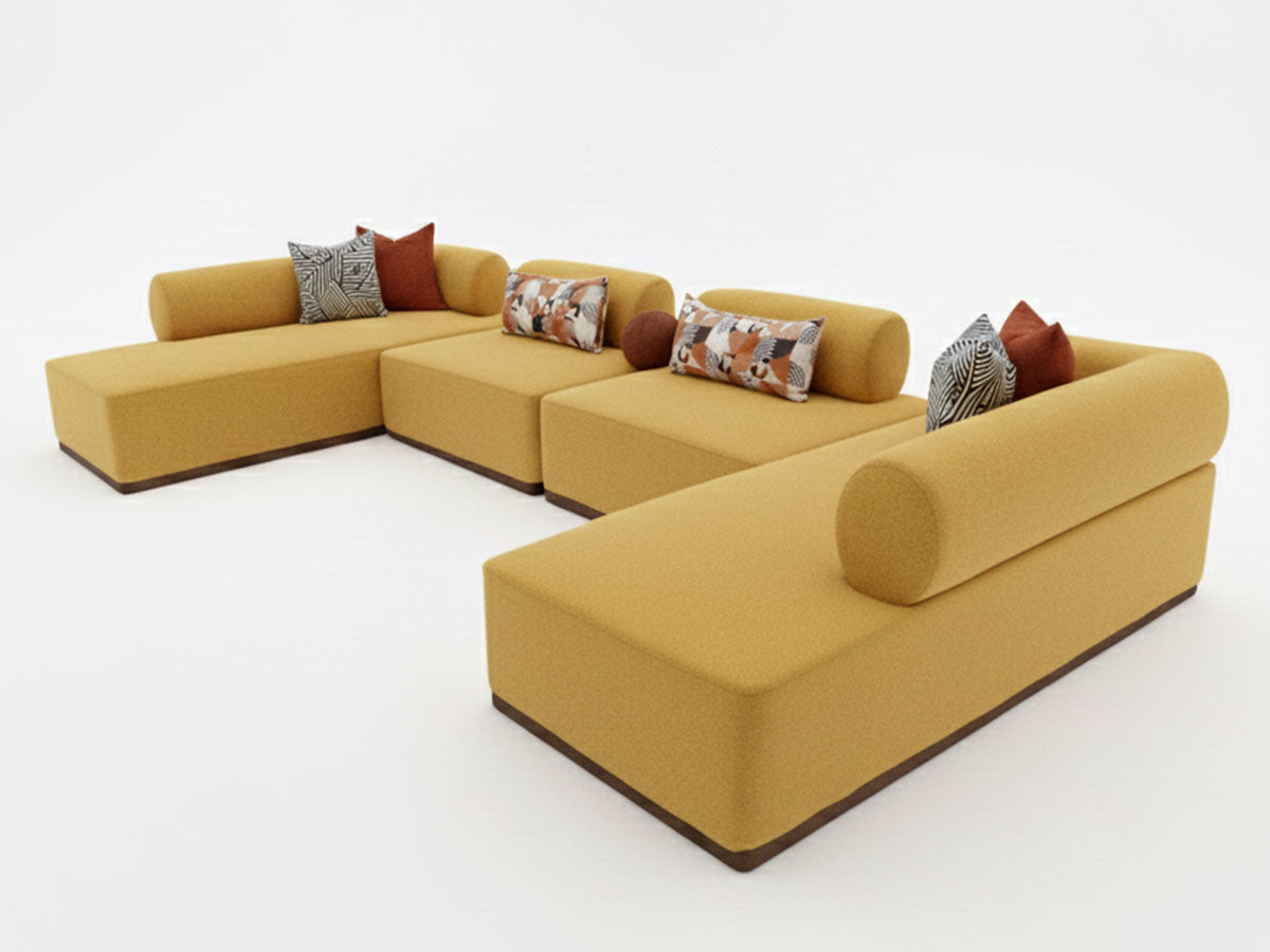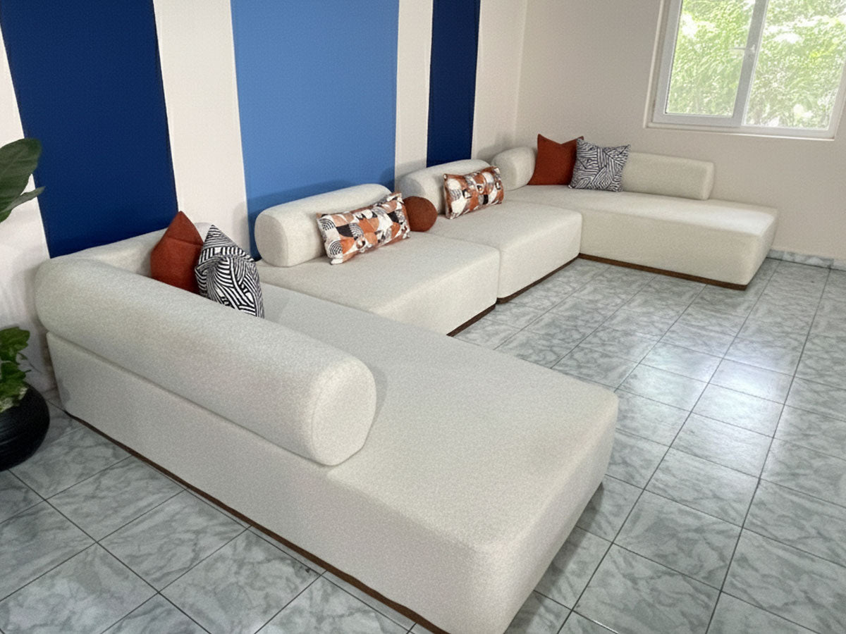 Redéfinissez le confort de votre intérieur avec notre canapé modulaire haut de gamme. Conçu spécifiquement pour s'adapter aux salons marocains modernes, ce modèle en forme de U allie une esthétique contemporaine épurée à une robustesse artisanale.