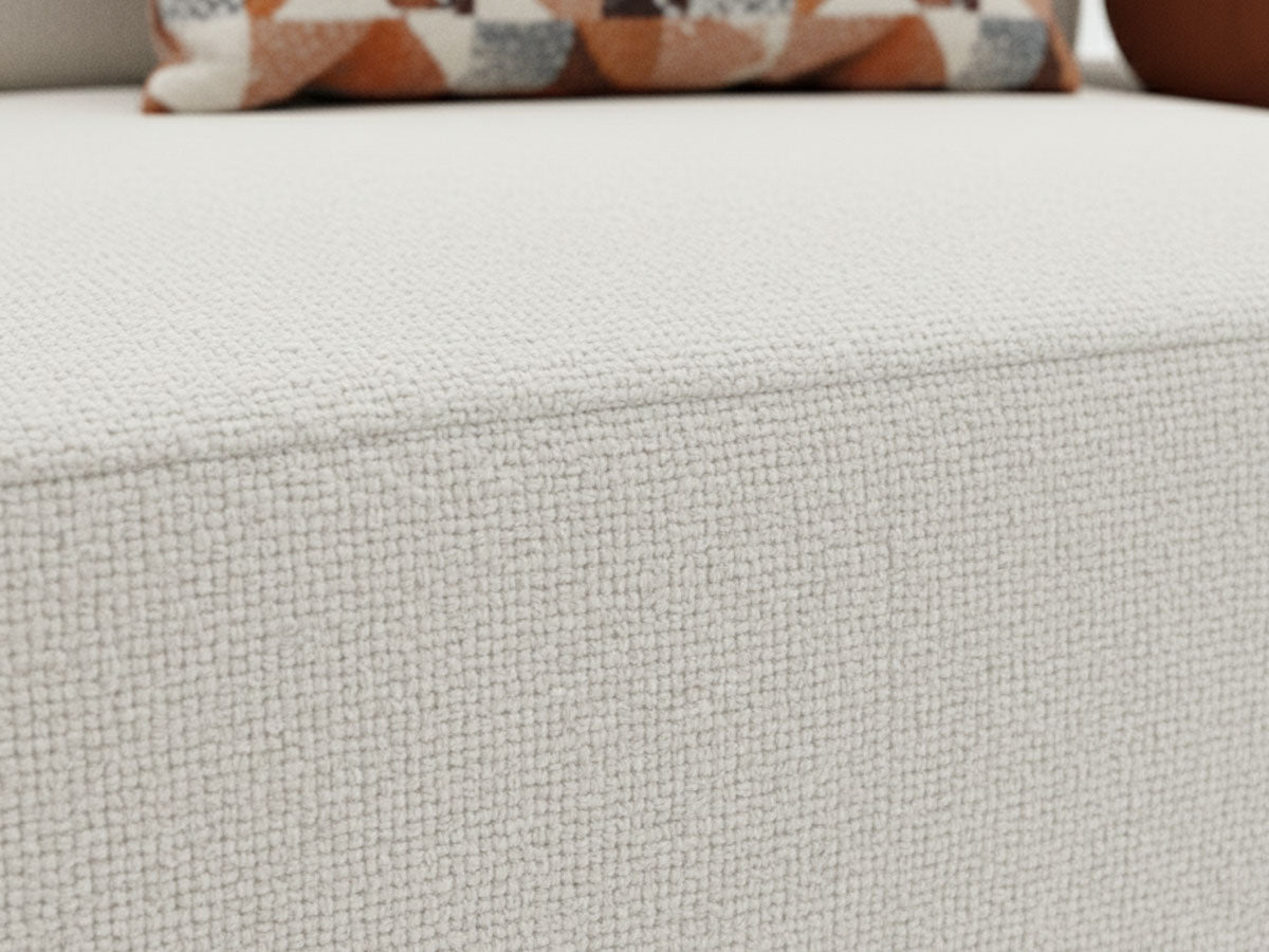 Revêtu d'un tissu bouclette ultra-tendance, il apporte une texture douce et chaleureuse à votre pièce de vie, tout en restant pratique grâce à son traitement anti-tâches.