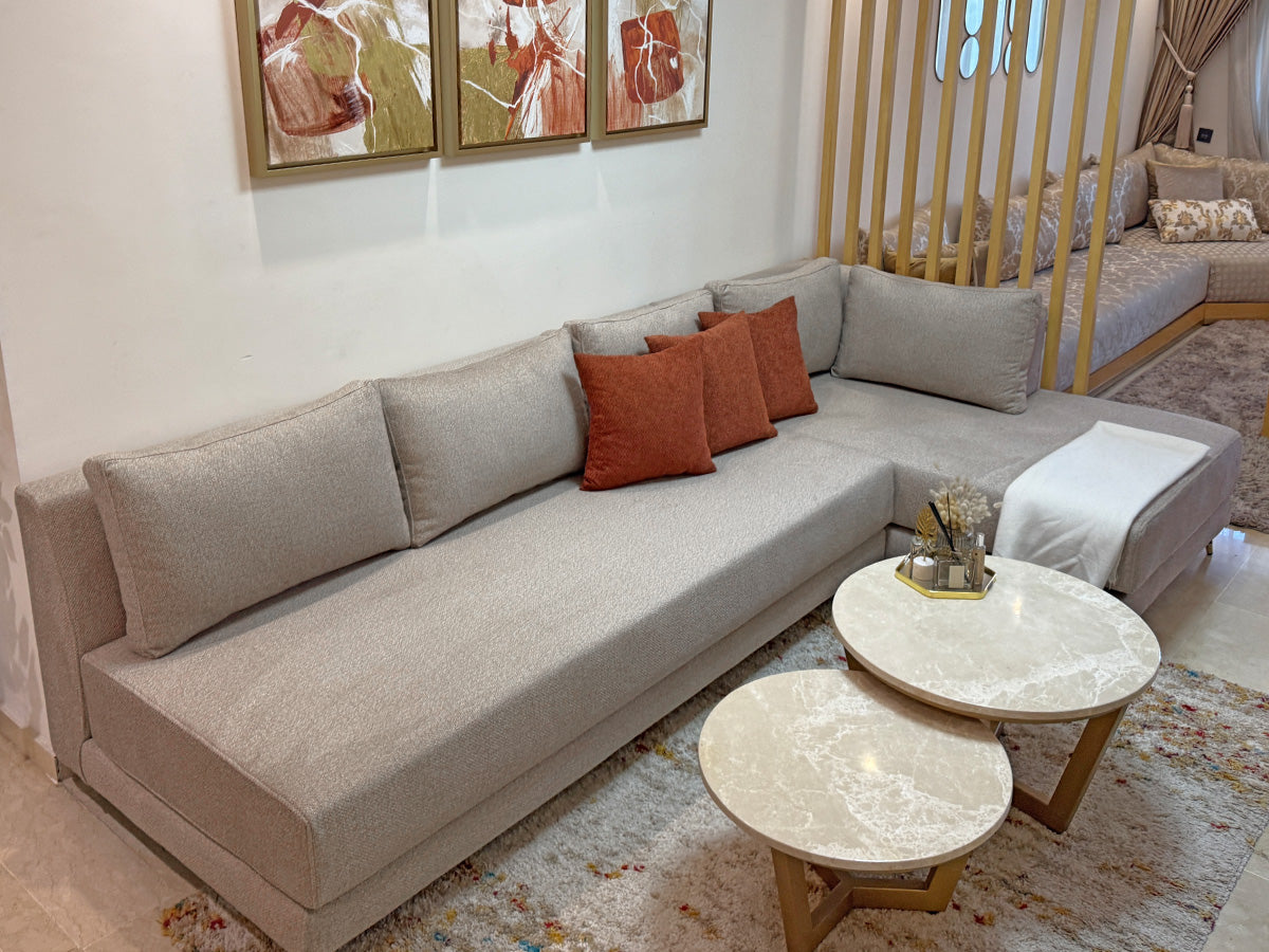 Transformez votre espace de vie avec notre Canapé d'Angle Moderne, une pièce maîtresse conçue pour ceux qui recherchent l’équilibre parfait entre l’élégance contemporaine et l'accueil chaleureux du salon marocain revisité.