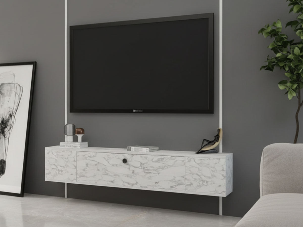 💎 Donnez à votre salon une touche de sophistication avec le meuble TV OLGAZ de Güzelhome. Avec une largeur de 160 cm, ce modèle élégant présente un effet marbre et doré qui apporte une touche de luxe à votre espace de vie.