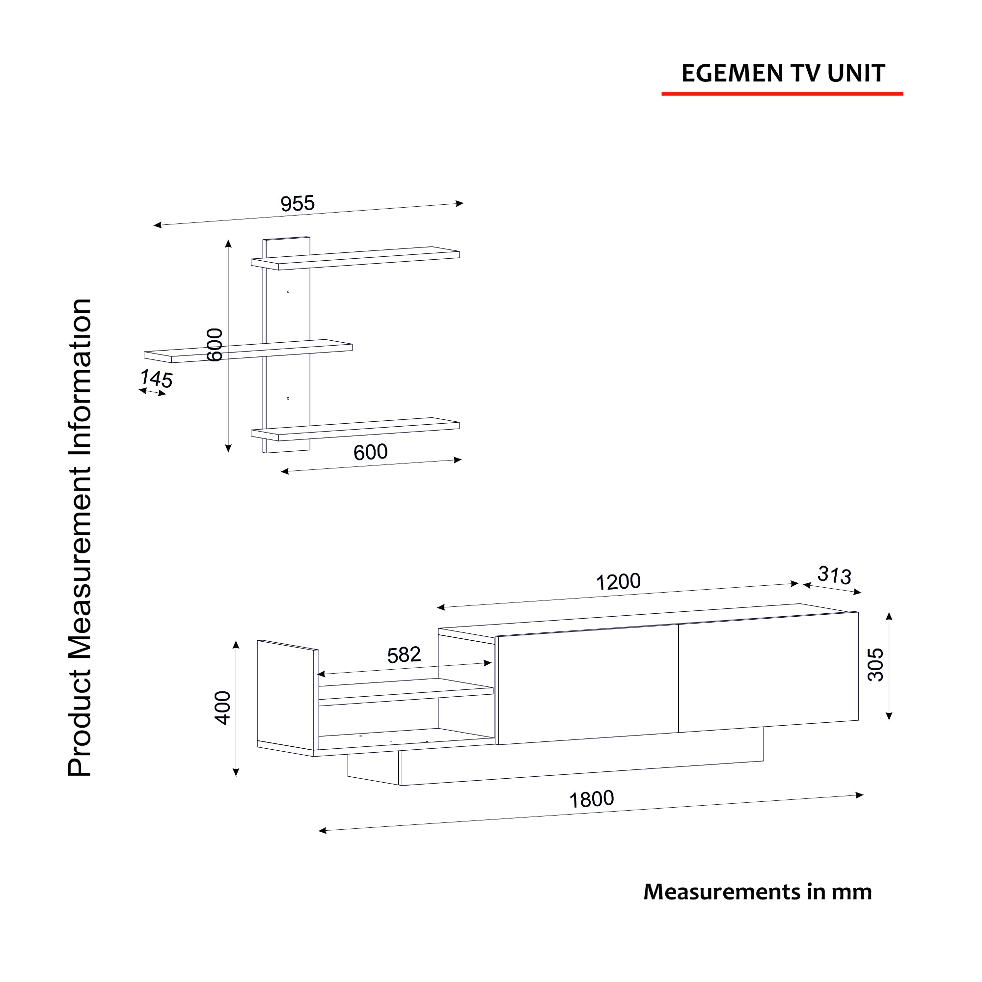 Dimensions de l'étagère murale: