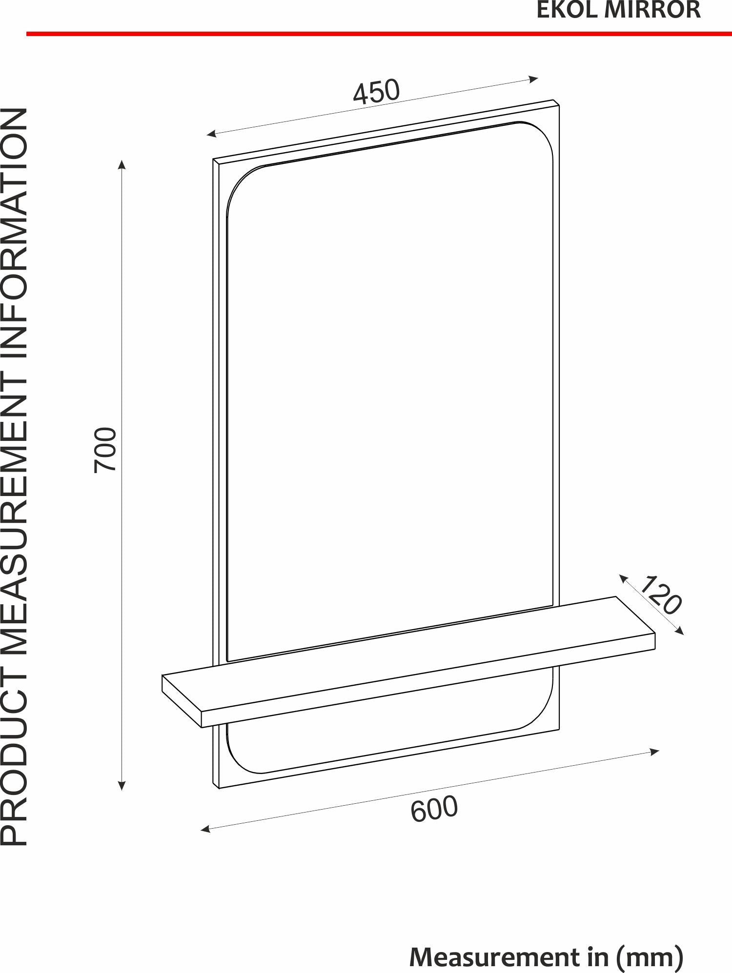 - Un cadre en bois est entourée d’un miroir de 4 mm.