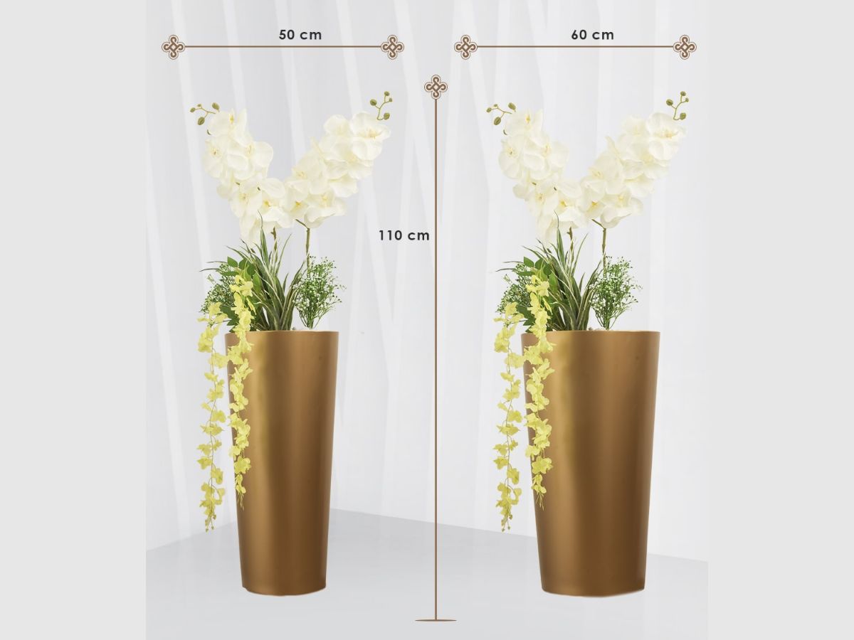 Installée dans un grand pot doré au design moderne, cette création apporte une touche de luxe et de modernité, idéale pour sublimer un salon élégant, un hall d’entrée chic ou un espace professionnel haut de gamme. Pensée pour les intérieurs contemporains, cette composition florale s’intègre parfaitement dans une décoration soignée et harmonieuse.