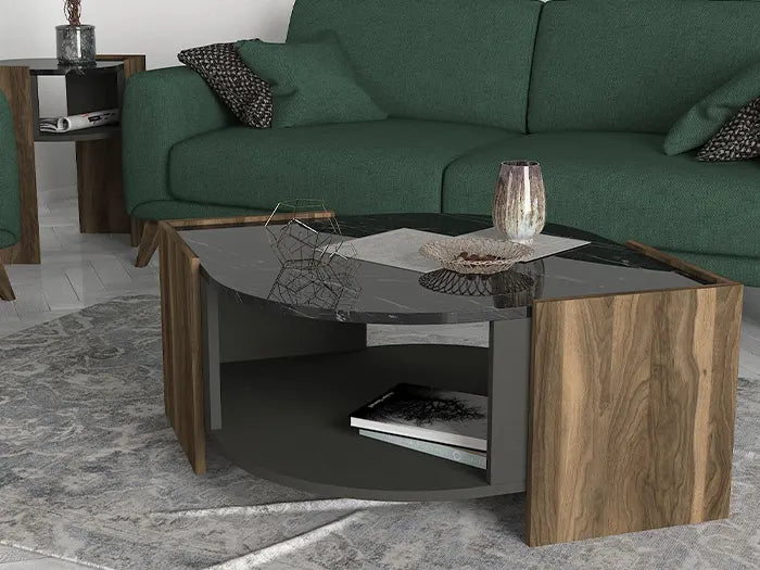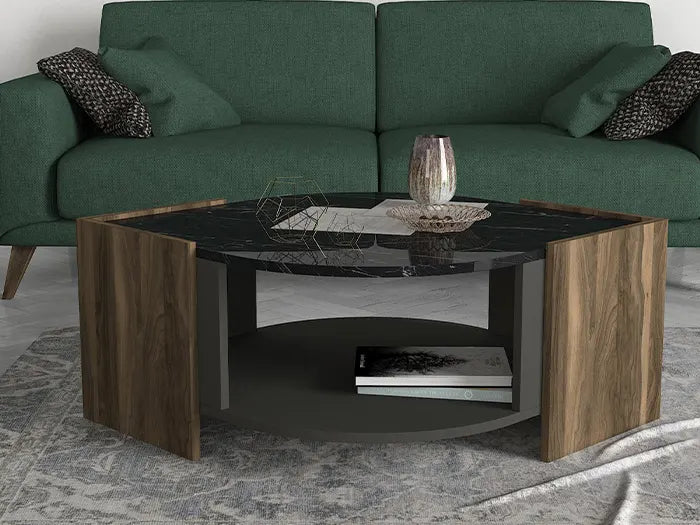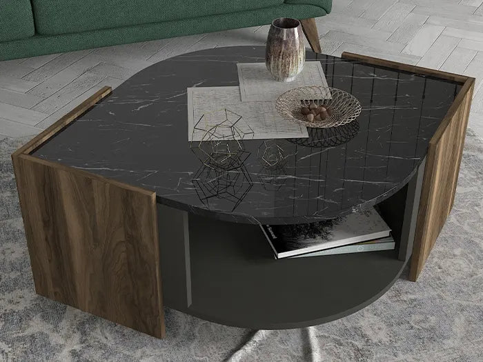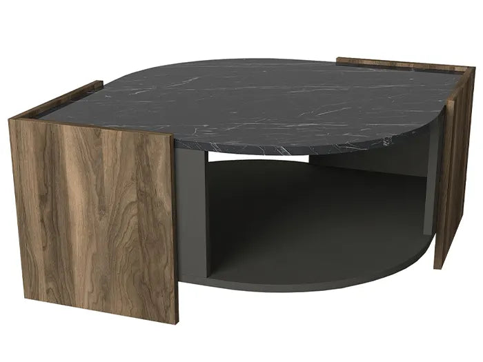 Table Basse LEBRAM - Noyer, Effet Marbre et Noir