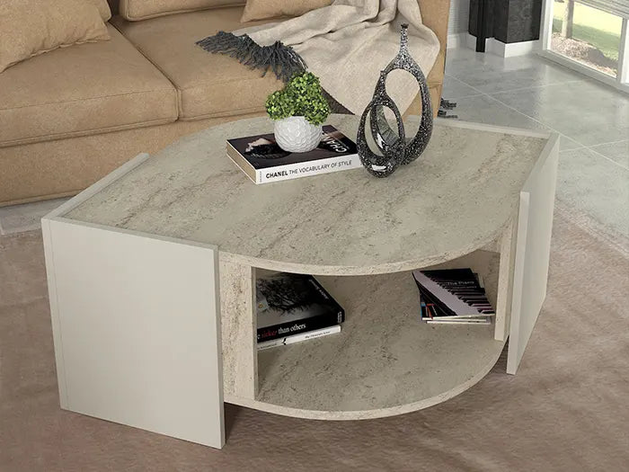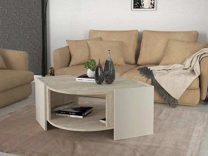 Table Basse MARBEL, Fabriqué en bois effet marbre travertin, parfaite pour la décoration de salon et séjour moderne.